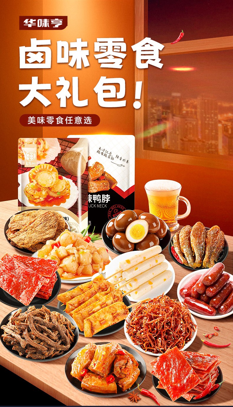 华味亨肉类零食大礼包休闲卤味肉干肉脯肉类零食送女友礼物【Q弹爽口】55g烧烤味鱿鱼