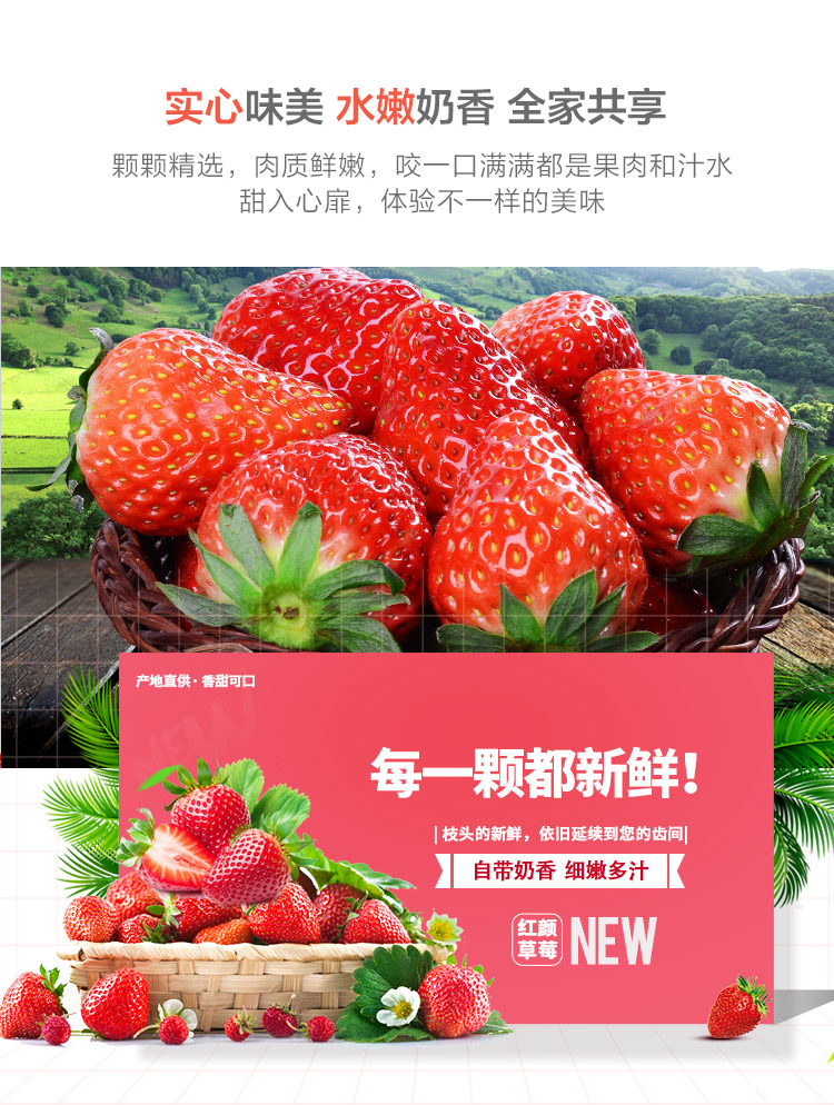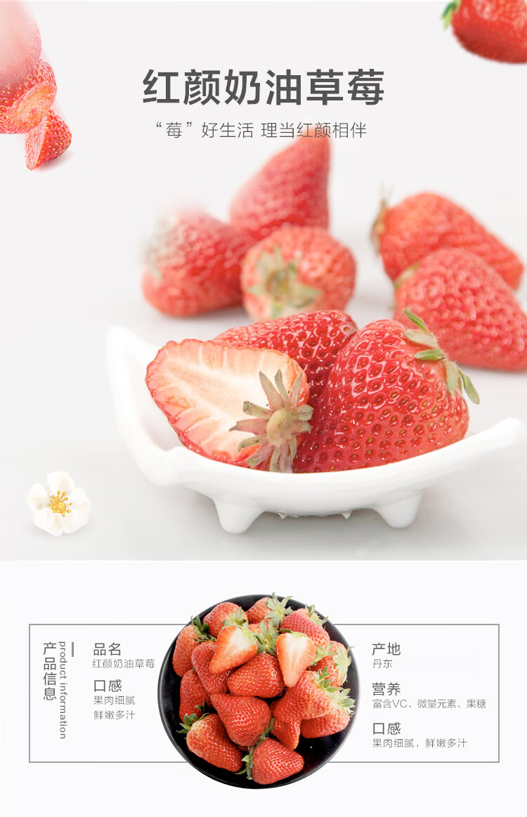 丹东红颜奶油草莓约重750g/24-36粒新鲜水果