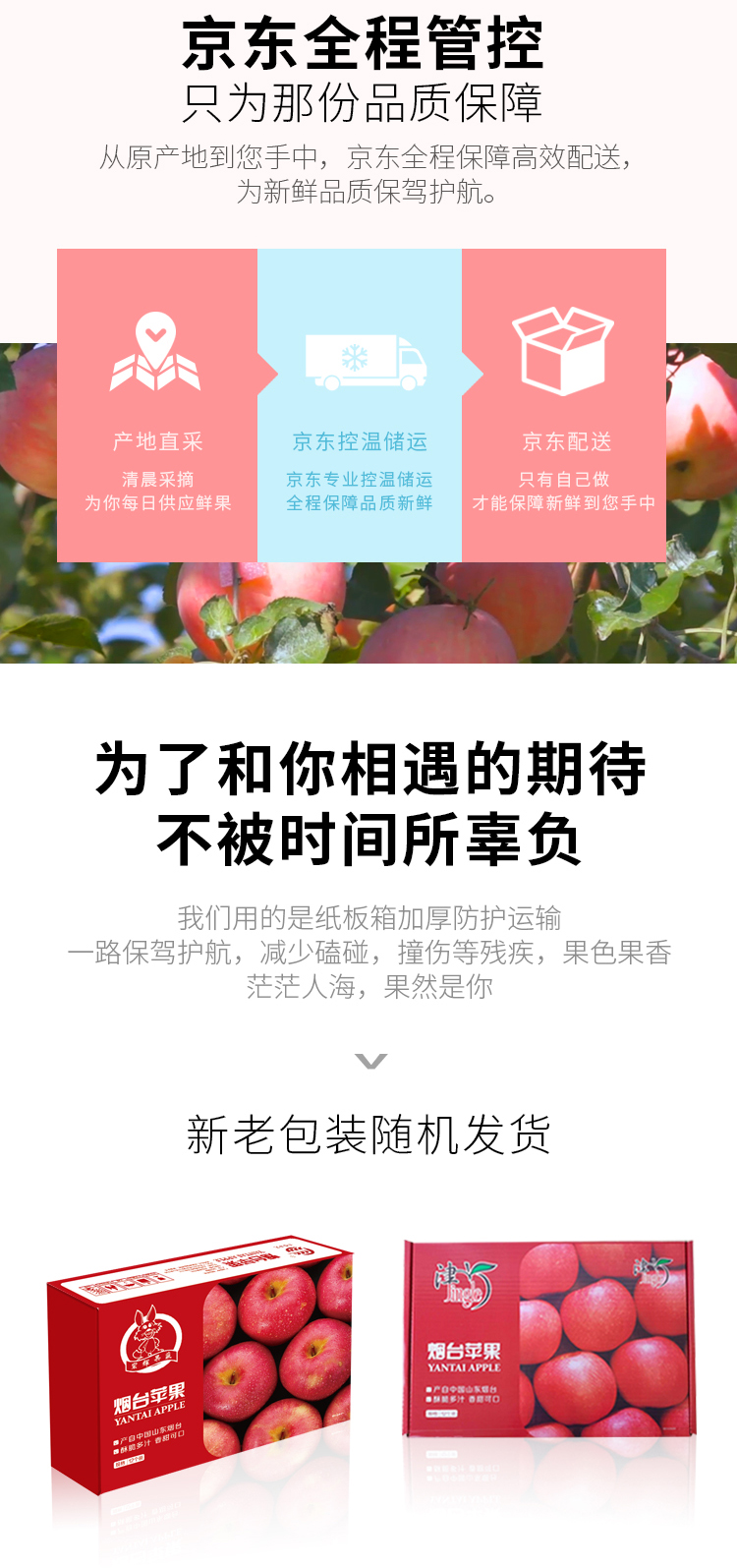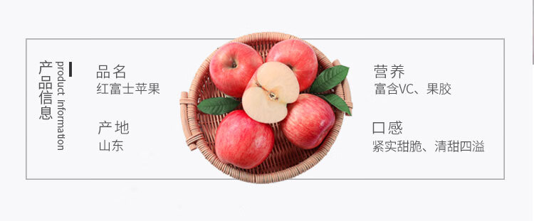 烟台红富士苹果12个礼盒净重2.1kg起单果160-190g水果