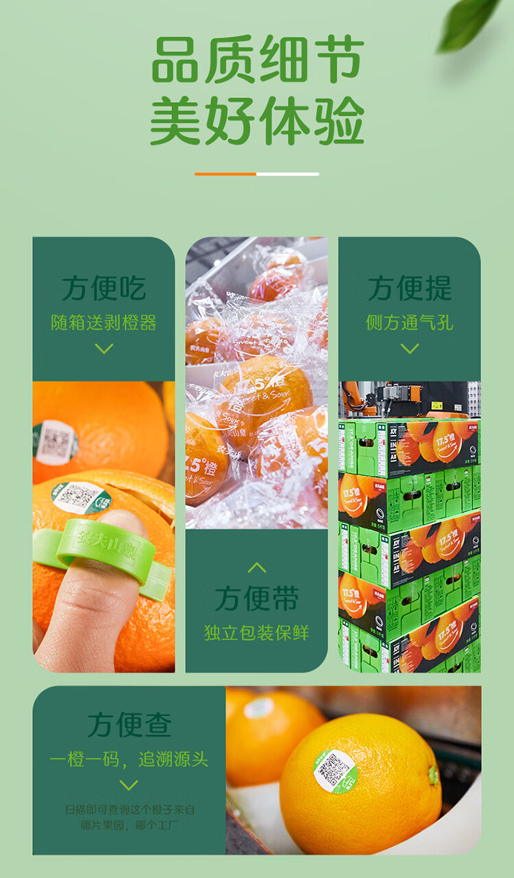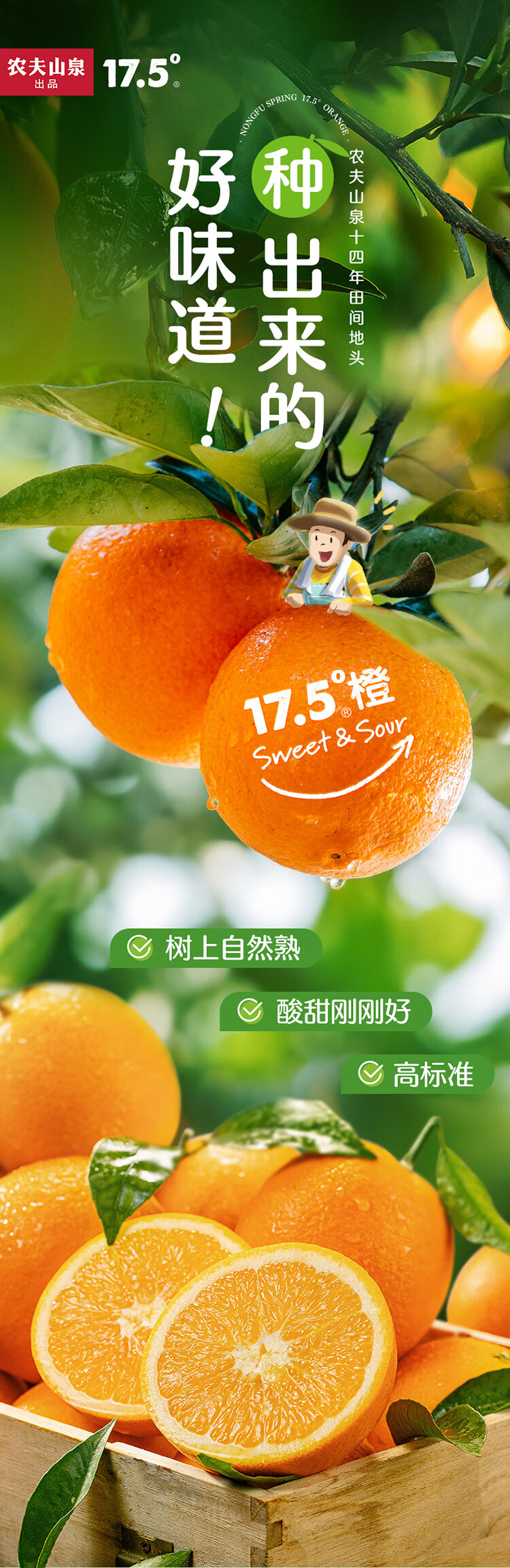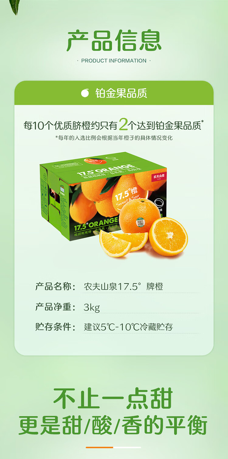 农夫山泉17.5°橙脐橙小巧橙3kg装铂金果水果礼盒