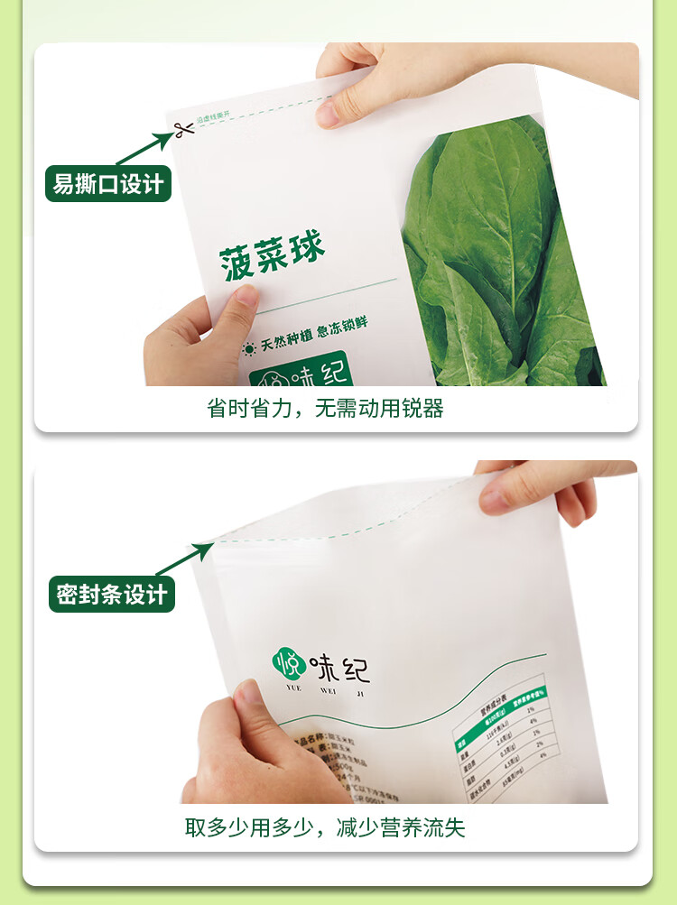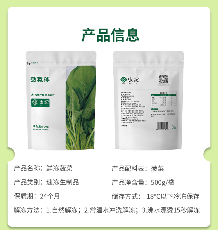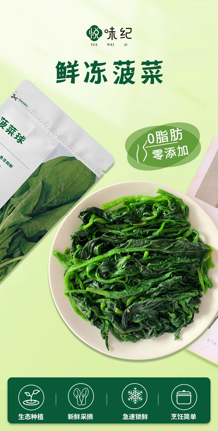 悦味纪0添加菠菜500g新鲜冷冻蔬菜食品生鲜方便菜凉菜速食