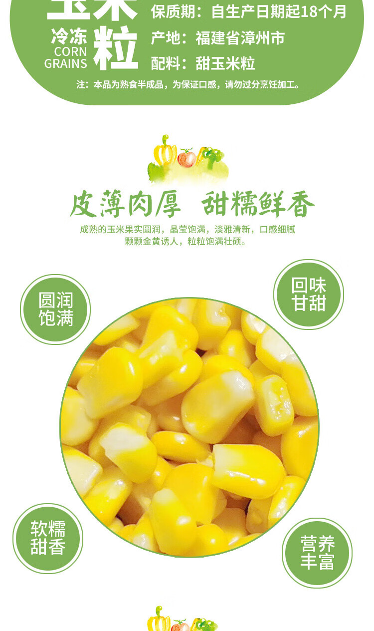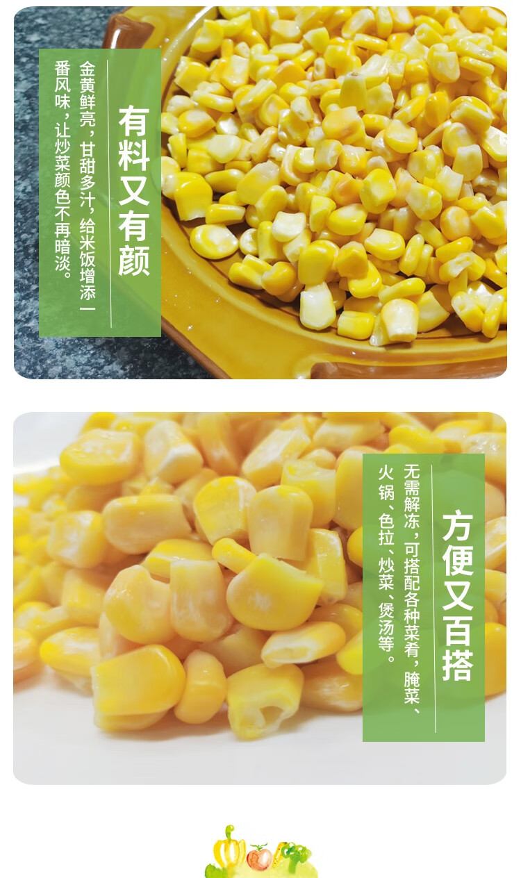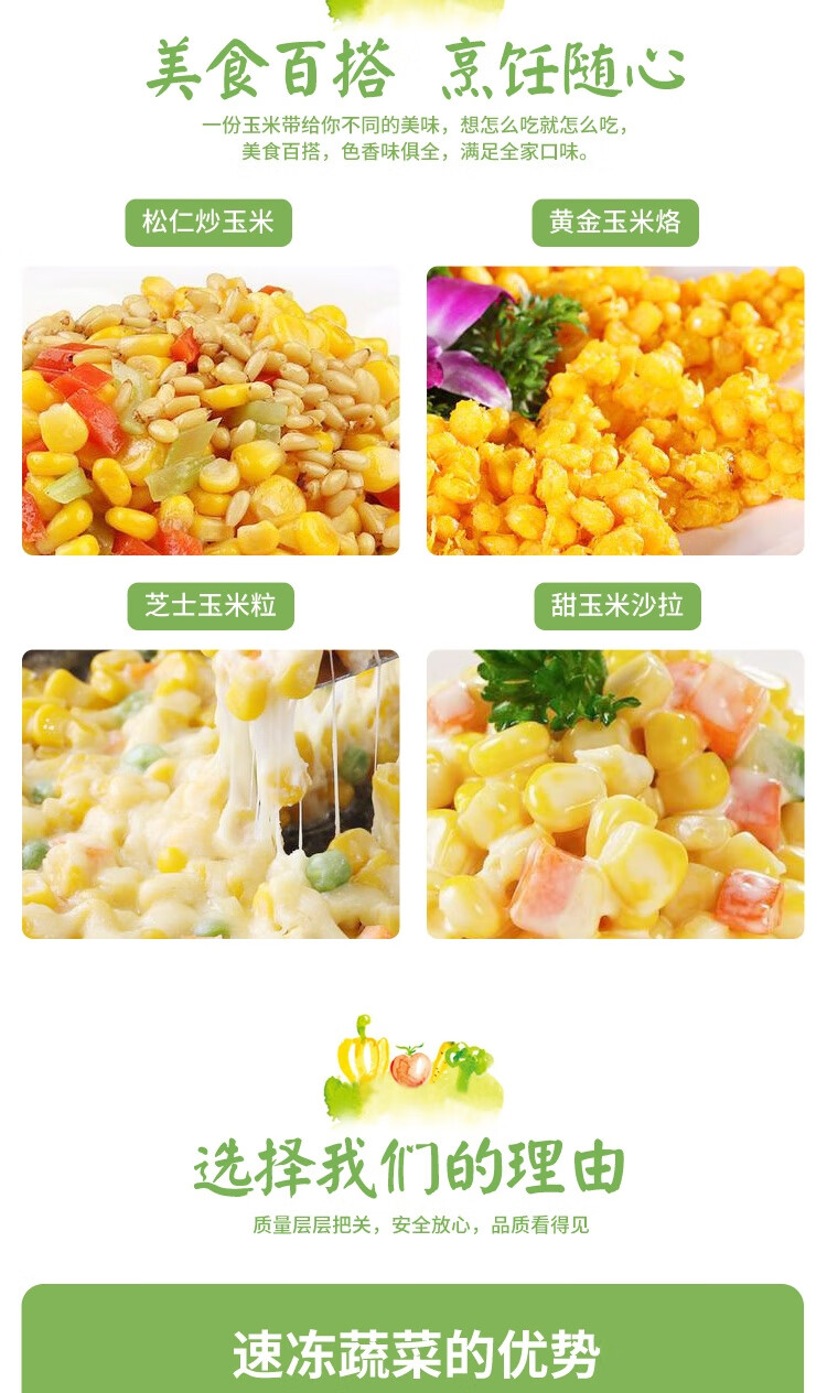 新润甜玉米粒900g速冻冷冻方便蔬菜方便菜半成品菜水果沙拉玉米粒