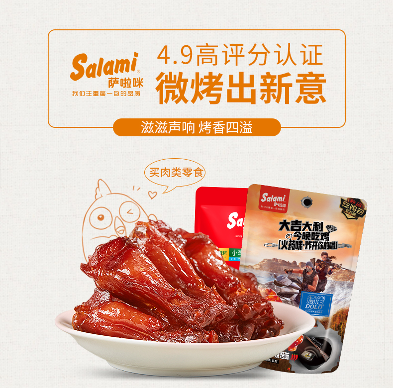 萨啦咪(salami)烧烤味小鸡腿70g袋装鸡翅根肉类熟食休